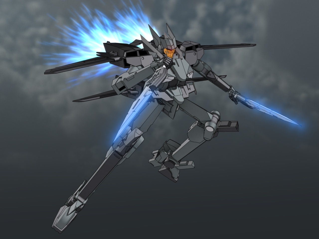 Until near the end of the second season no new flag-type suits appear, but boy once they do are we in for a treat, where we get two. The first of these is the Masurao. This new suit is built yet again to go up against the Gundams, but unfortunately never sees battle as the improved model appears before the Masurao gets to sortie. This improved model is the Susanowo. Featuring two blades named after Graham's dead compatriots, this is the machine that finally allows Graham to fight the 00. Even still Graham almost keeps his promise to defeat a Gundam in a flag as when the suit is nearly destroyed, it is revealed that it has a flag face beneath its new exterior. The only issue with these two suits is that they cannot transform and have no ranged weapons. Instead these machines were built with one goal in mind. An honorable duel with the pilot of the 00.